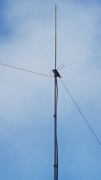 Oct 2016 - 2 X dual band and 3 VHF jpoles up. Single coax and loads up almost perfect on both 144/440VY1GP George, Flag Pole Antenna