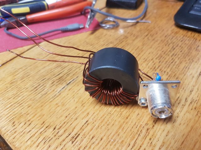 Second, I would place one of the coax corrector on the front of the box. For now just have a short piece of coax laying loose so I can connect a portable radio (or other) when I am doing radio servicing.