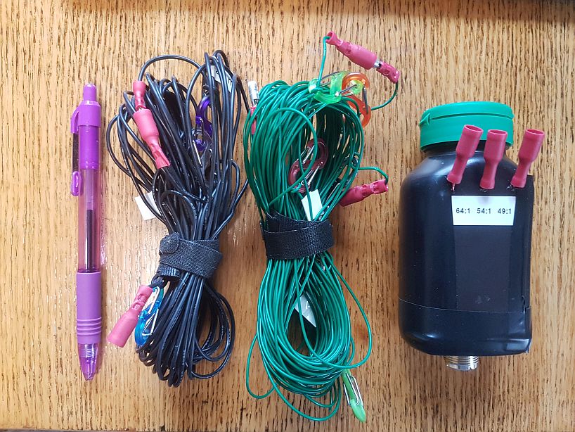 Objectives: lightweight, mobile portable, backpackable, no radials, no tuner, 49:1, 54:1, 64:1 efficient transformer